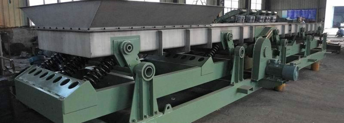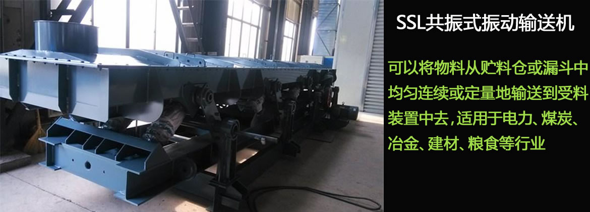SSL共振式振動(dòng)輸送機(jī)是利用激振器使料槽振動(dòng),從而使槽內(nèi)物料沿一定方向滑行或拋移的連續(xù)輸送機(jī)械。激振器在電機(jī)驅(qū)動(dòng)下產(chǎn)生周期性振動(dòng)力,通過(guò)傳動(dòng)機(jī)構(gòu)傳遞到輸送槽,輸送槽在激振源的帶動(dòng)下按激振源相同的振動(dòng)頻率產(chǎn)生周期性線性振動(dòng),同時(shí)振動(dòng)力方向與輸送槽體輸送方向呈一定的拋料角,槽內(nèi)物料在強(qiáng)迫振動(dòng)力的作用下沿槽體輸送面連續(xù)跳躍向前移動(dòng)。除激振機(jī)構(gòu)某些零部件外,相對(duì)轉(zhuǎn)動(dòng)部件很少。物料在振動(dòng)輸送機(jī)中呈現(xiàn)拋射狀態(tài)輸送,對(duì)輸送槽的磨損較小。